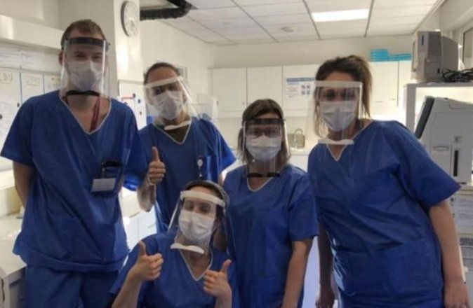 Visières de protection 3Dprinted avec visière en PVC transparent.